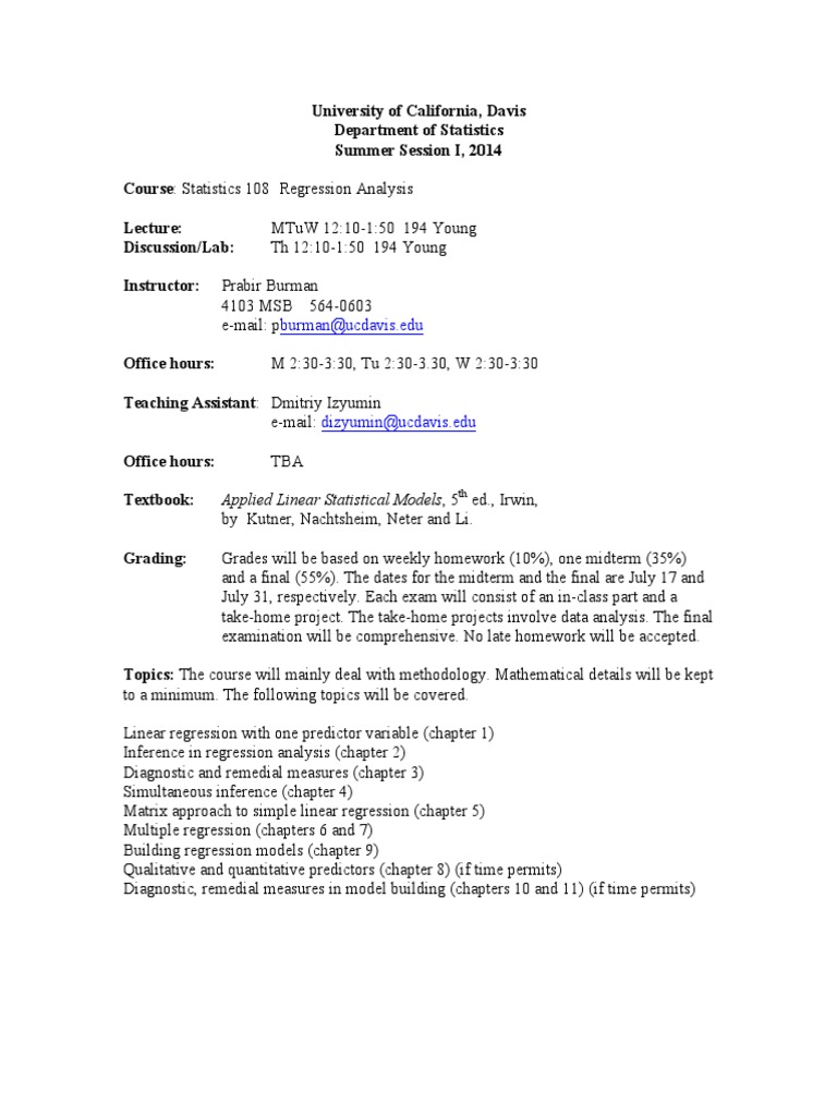 Tellinghuisen Mathematics 2009 14 Residual and influence analysis to a. We introduce regression analysis and discuss causation versus association and deterministic versus statistical modelsThe book used in this course is the 5t. Textbook Examples Applied Regression Analysis Linear Models and Related Methods by John Fox.